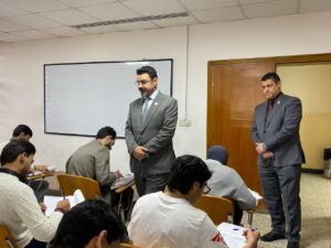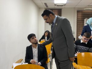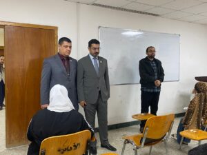 وفي هذا السياق، أجرى السيد عميد كلية الهندسة الأستاذ الدكتور مالك عبد الرزاق جولة تفقدية للاطلاع على سير الامتحانات والوقوف على احتياجات الطلبة، رافقه فيها السيد المعاون العلمي م.د عمر حسان حميد.
